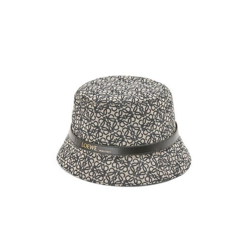 LOEWE/罗意威 22年春夏新款 女士海军蓝/黑色提花布和牛皮革老花图案水桶帽渔夫帽K820HB1X07-5938