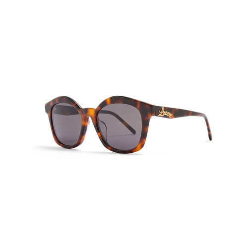 LOEWE/罗意威 22年春夏新款 女士烟熏黑色镜片玳瑁效果深哈瓦那棕色醋酸纤维粗眉镜框太阳镜墨镜G832270X04-4036