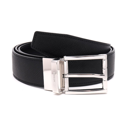BALLY/巴利 Shiff系列男士纯色粒面压花小牛皮银色金属搭扣可调节双面皮带腰带 6221536