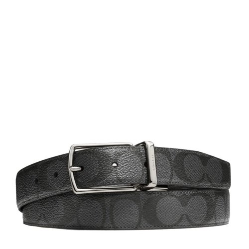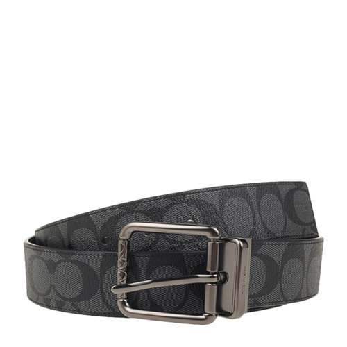 COACH/蔻驰 男士黑灰色PVC配皮经典双C字母徽标印花装饰休闲商务双面两用可裁剪针扣型皮带腰带 F91283QBMI5