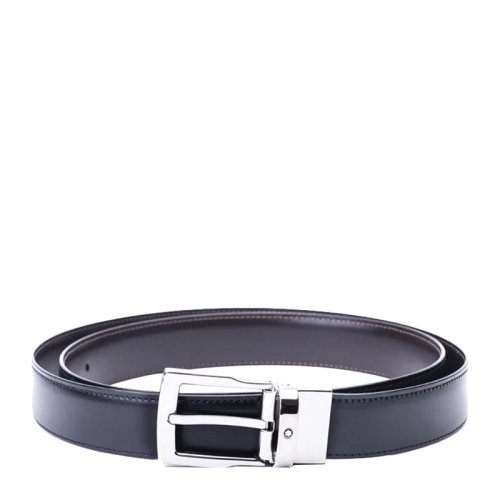 MontBlanc/万宝龙 当代系列 男士双面牛皮三环式镀铬平滑板扣皮带腰带可裁剪 黑色/咖色 103427