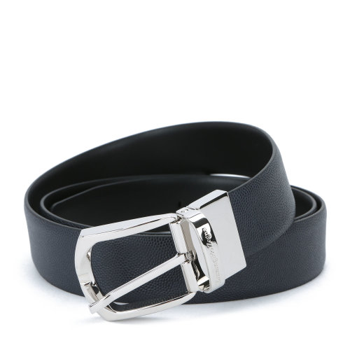 ERMENEGILDO ZEGNA/杰尼亚 深蓝色 粒面皮革配黑色光滑皮革双面皮带小牛皮腰带 男士腰带/皮带男 BCAV1A-J0946C-NVN