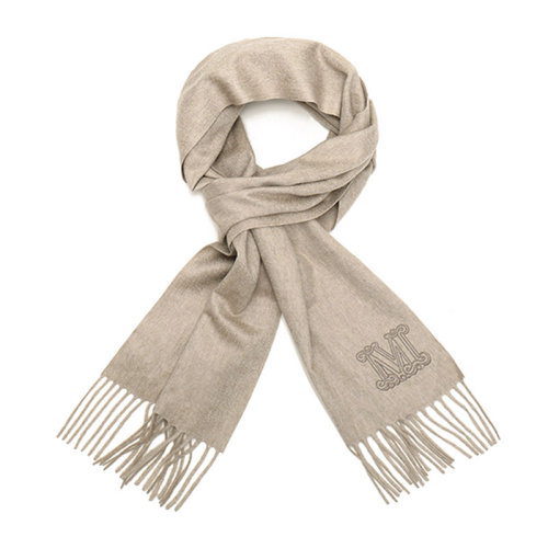 MaxMara/麦丝玛拉 女士深红色骆驼绒经典字母徽标刺绣下摆流苏装饰披肩围脖围巾 1546028306007