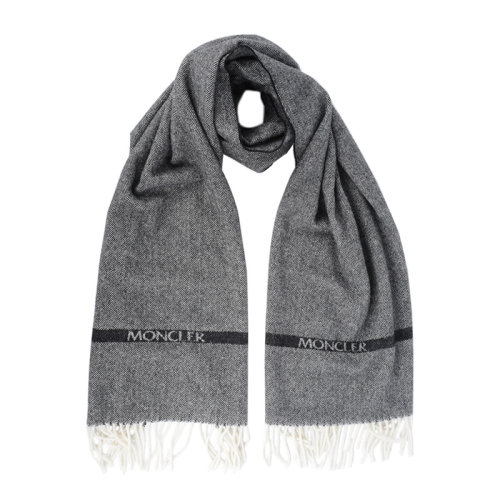 Moncler/蒙克莱 男士 配饰 灰色字母LOGO徽标印花流苏围巾 男士围巾 3C00015-0T999-910