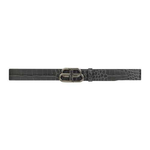 Balenciaga/巴黎世家新款 BB系列 男士深灰色半亚光黑色鳄鱼纹压花牛皮革深银色金属扣腰带38毫米5703701ROB51309