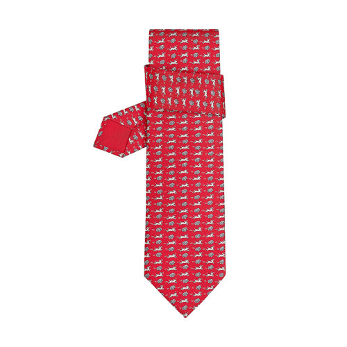 HERMES/爱马仕 男士红/白/灰真丝斜纹领带H606216T05