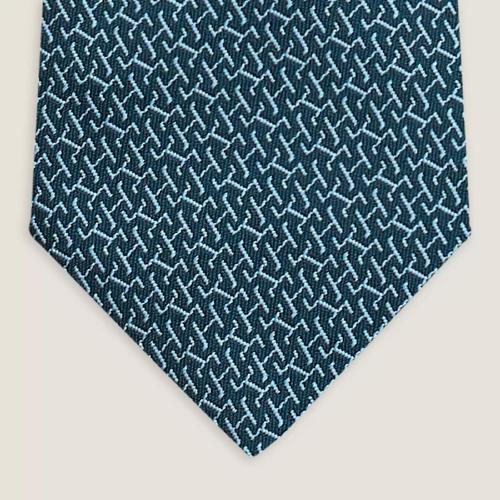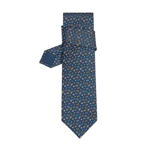 HERMES/爱马仕 男士中蓝/绿/橙硬件图案真丝斜纹领带H606215T25