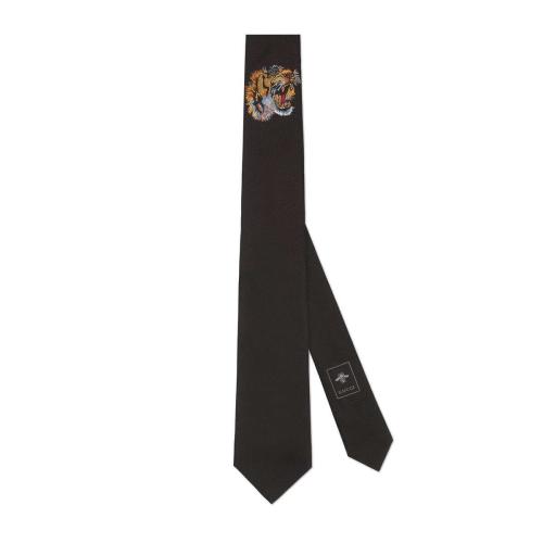 GUCCI古驰 22年秋冬 男士 扭结下方老虎图案真丝领带 452170 4E002 1000