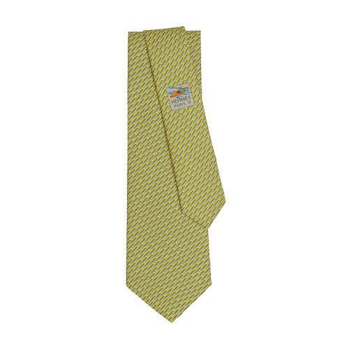 HERMES/爱马仕 男士黄色/灰色真丝重斜纹皮划艇领带H646238T16