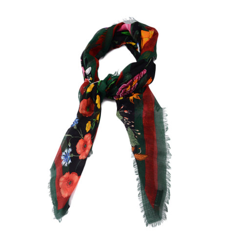 GUCCI/古驰 女士黑色花卉印花羊毛桑蚕丝披肩围巾围脖 452716-3G345-1066