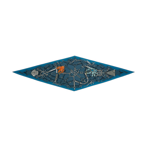 HERMES/爱马仕 22年早春新款 Losange系列 男士蓝色拼色羊绒真丝混纺围巾H433159T02