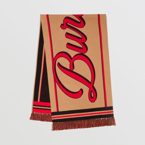 BURBERRY/博柏利 22年早春新款 男女同款桦木棕色纯羊毛大LOGO流苏运动风围巾80457891