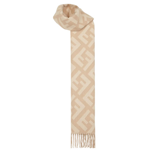 FENDI/芬迪新款 女士米色羊绒饰有流苏的长围巾FXT260A8RSF0QU5