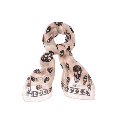 Alexander McQueen/亚历山大麦昆 粉红色丝质 黑色骷髅头图案 围巾/披肩围巾 1106403052Q9960 HQY012345C
