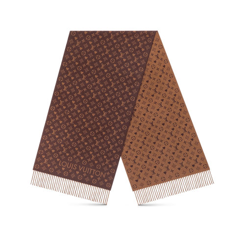 Louis Vuitton/路易威登 22年秋冬新款 GAME ON系列 女士棕色纯山羊绒老花图案流苏围巾M77377