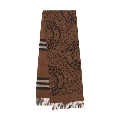 BURBERRY/博柏利新款 男女通用桦木棕双面两用格纹拼专属标识羊绒围巾80466151