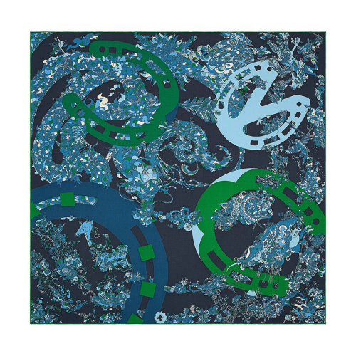 HERMES/爱马仕 22年早春新款 Carré H 100 Quatre Chevaux系列 男士拼色羊绒真丝混纺围巾H103807T07