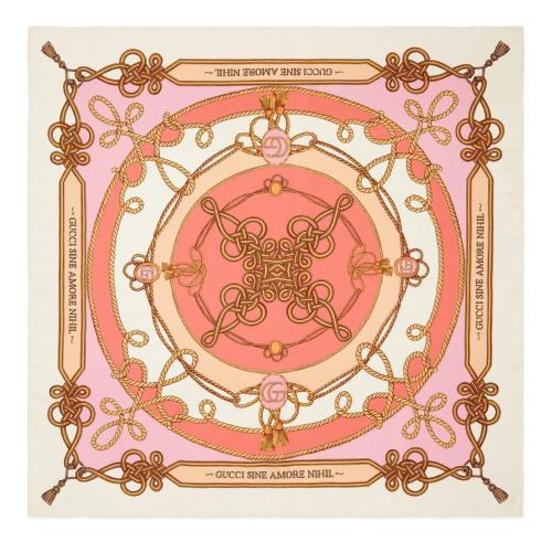 GUCCI古驰 22年秋冬 女士 光影饰带印花真丝围巾 703096 3G001 9272