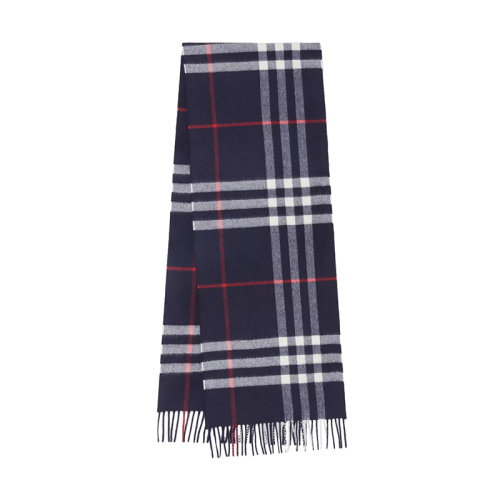 BURBERRY/博柏利新款 男女同款海军蓝经典格纹羊绒流苏围巾80155421