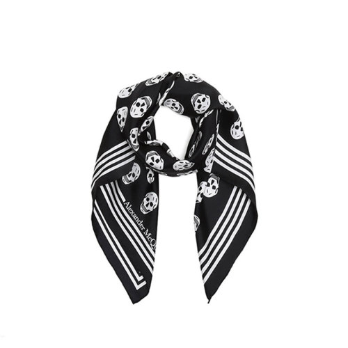 Alexander McQueen/亚历山大麦昆 男女同款黑色配象牙白骷髅头印花图案方形丝绸丝巾围巾/披肩围巾 5909293001Q1078