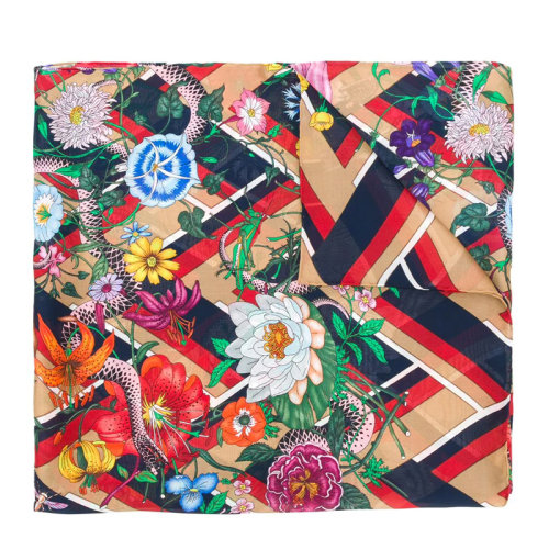 GUCCI/古驰 女士多色拼色真丝花卉蛇纹印花披肩围巾丝巾 499186-3G011-9888