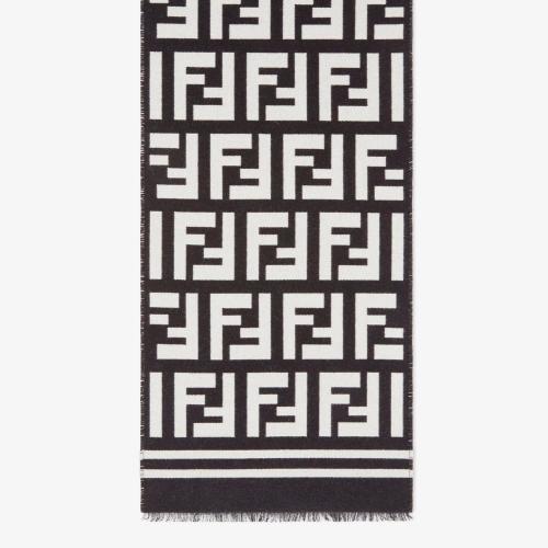 FENDI芬迪 22年秋冬 男士 围巾 黑色羊毛真丝围巾 FXS424A3Q1F0QA1