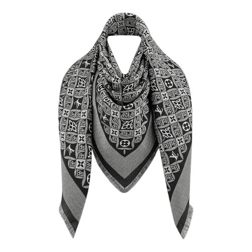 Louis Vuitton/路易威登 22年早春新款 Monogram Since 1854系列 女士黑色老花真丝羊毛混纺围巾披肩MP2821
