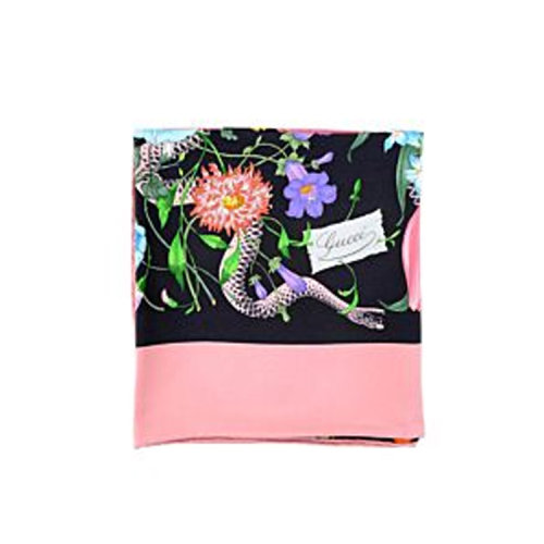 GUCCI/古驰 时尚混色 黑底粉边丝质花朵印花女士围巾丝巾 452710 3G001 1072 HQY012345C