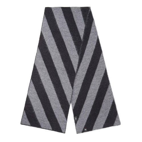 FENDI/芬迪 男士黑灰色斜条纹图案的长方形马海毛羊毛混纺围巾FXS124AH7HF0D9B