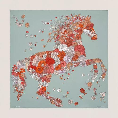 HERMES/爱马仕 140羽毛节披肩 女士紫红色/绿色/旧粉红色羊绒真丝围巾H243433S05