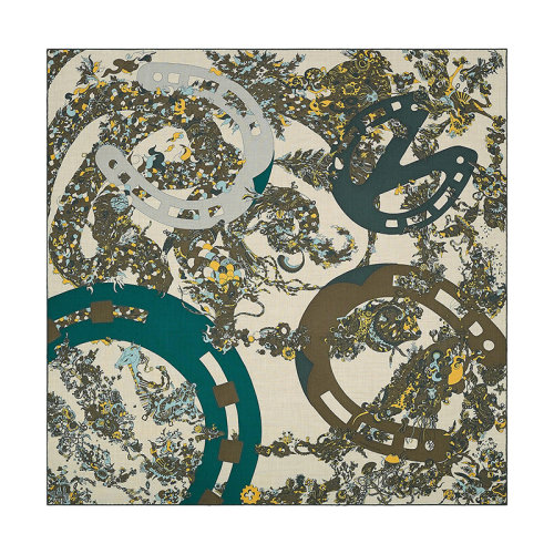 HERMES/爱马仕 22年早春新款 Carré H 100 Quatre Chevaux系列 男士拼色羊绒真丝混纺围巾H103807T02
