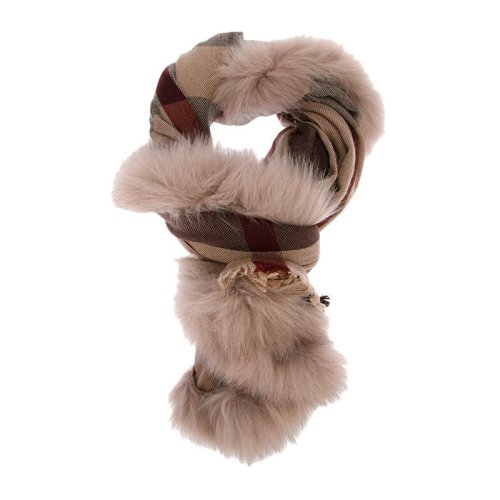 BURBERRY/博柏利 男女通用 中性皮草装饰羊绒格子烟熏TRENCH色格子围脖围巾 3883893