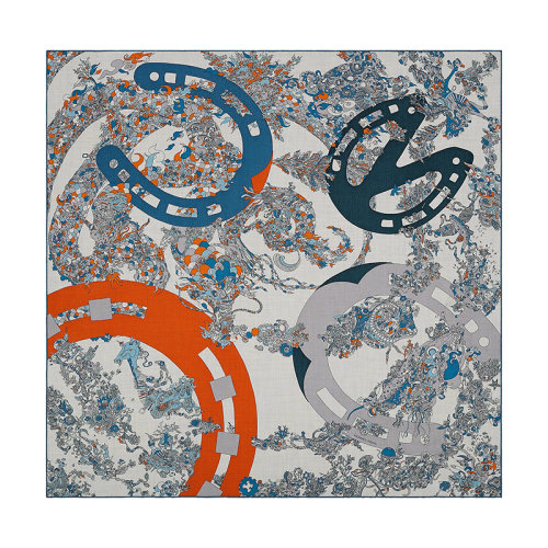 HERMES/爱马仕 22年早春新款 Carré H 100 Quatre Chevaux系列 男士拼色羊绒真丝混纺围巾H103807T04