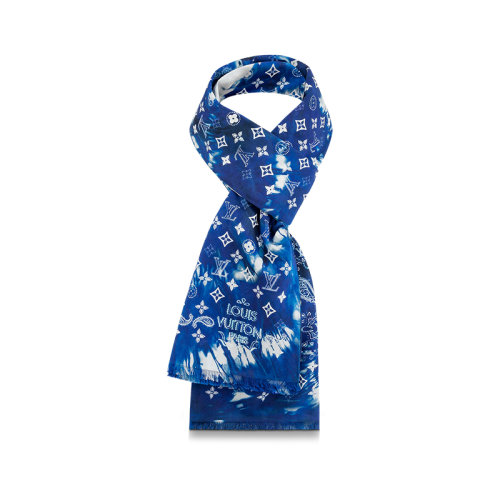 Louis Vuitton/路易威登 22年秋冬新款 MNG系列 男士蓝色纯棉老花图案方巾围巾MP3346