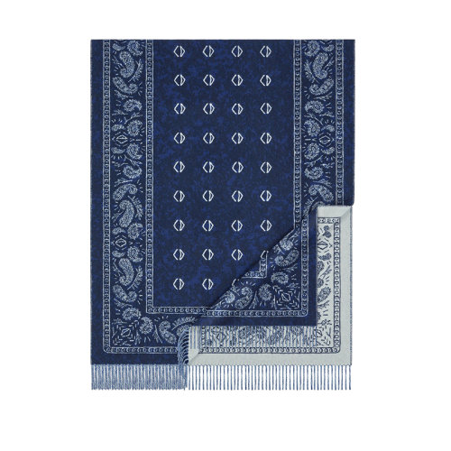 DIOR/迪奥 22年春夏新款 男士蓝色羊绒和羊毛混纺饰巾图案流苏围巾28E0003A0648_C580