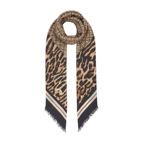 BURBERRY/博柏利 羊毛丝混纺豹纹印花女士丝巾