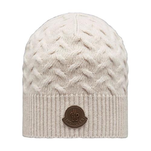 Moncler/蒙克莱 女士罗纹羊毛顶部毛绒球装饰正面刺绣徽标针织帽无檐帽女帽 3B70001-0402A 多色可选