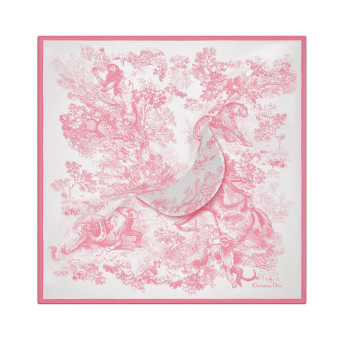 DIOR/迪奥 22年早春新款 女士象牙色/牡丹粉色纯桑蚕丝茹伊印花遮阳帽21JOU150I602_C405