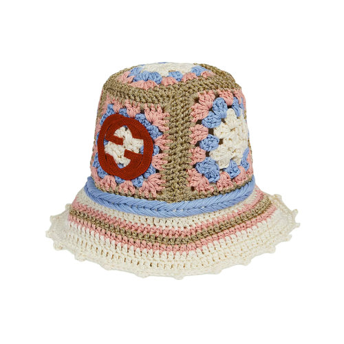 GUCCI/古驰 22年秋冬新款 Lovelight系列 女士多色棉质混纺钩编织物花朵图案渔夫帽?7123413HAM08078