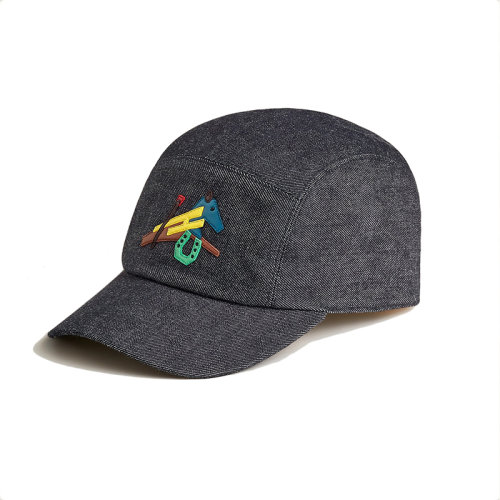 HERMES/爱马仕 22年春夏新款 Nevada系列 男士黑色纯棉牛仔布马术拼图贴片棒球帽鸭舌帽H221053N6059
