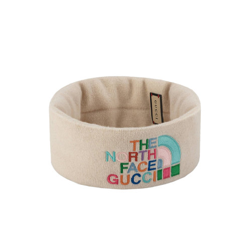 GUCCI/古驰 22秋冬款 The North Face联名系列 女士象牙白色涤纶/羊毛混纺饰有刺绣LOGO标志头带?6716113GD349288