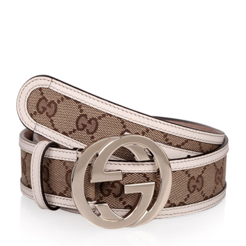 GUCCI/古驰 男女同款 中性经典金色双G扣白色织物配皮板扣皮带腰带 114876-F40IG-9761