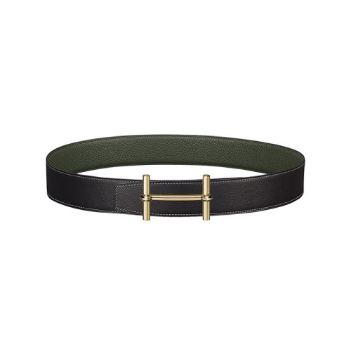 HERMES/爱马仕 H系列 石墨/铜绿色荔枝纹小牛皮 男士双面金扣皮带38毫米H077938CP2K/H077971CAAO080