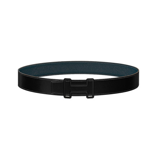 HERMES/爱马仕 H系列 黑蓝色荔枝纹小牛皮 男士双面哑光黑金属扣皮带38毫米H077942CY89/H077971CAAE080