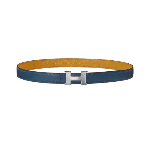 HERMES/爱马仕 H系列 蓝黄色荔枝纹小牛皮 女士双面银扣皮带24毫米H075395CK05/H052150CAEC070