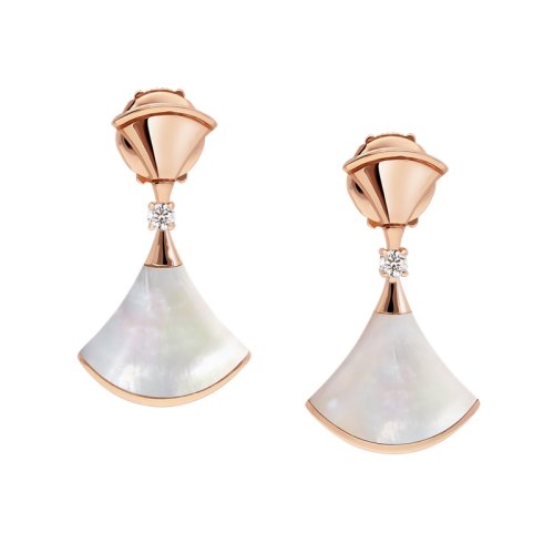 BVLGARI/宝格丽 DIVAS'DREAM经典款 白贝母18K金玫瑰金镶钻石耳坠 350740