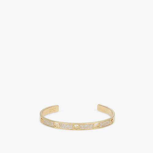 FENDI/芬迪 经典款F Is Fendi系列 金色黄铜镶嵌透明水晶徽标刻印手环手镯8AG9286DMF089U