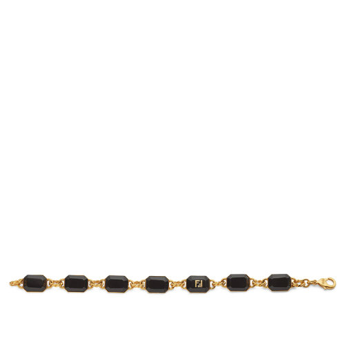 FENDI/芬迪 FF系列 男士复古金色饰面金属黑色宝石压纹FF图案手链7AJ528F1NF1F0V
