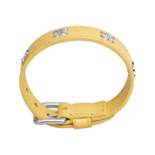 【标题】CELINE/赛琳 22新款 TRIOMPHE系列 男女同款黄色皮革银扣手链46X623SMO.11SP