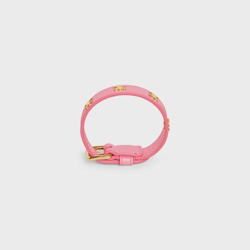 CELINE/赛琳 经典款MULTI TRIOMPHE系列 粉色光滑小牛皮饰黄铜金扣手链手环46X623SMO.24GF